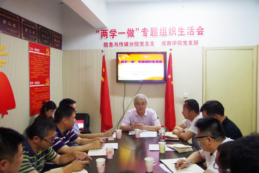 5月31日下午,信息与传媒分院党总支、成教学院党支部联合召开“两学一做”专题组织生活会,参加会议的有总支委员、支部委员、行政干部,学院领导贺星岳院长莅临指导,纪委委员项光春同志随同参加。