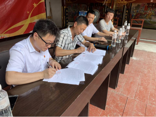 71日上午,在纪念建党98周年之际,浙江工贸职业技术学院温州文化创意学院(信息与传媒分院)与永嘉县碧莲镇小渠村共建“产学研基地”战略合作联盟签约仪式在小渠村的文化礼堂隆重举行。出席签约仪式的人员有浙江工贸职业技术学院信息与传媒学院文创党支部全体党员及部分师生代表共计12人、碧莲镇相关领导、小渠村党支部及相关人员、部分老年人代表。小渠村党总支书记汤海伦、浙江工贸职业技术学院温州文化创意学院副院长吴同喜分别发表了致辞,向村民介绍了村校联合党建、合作项目以及发展规划