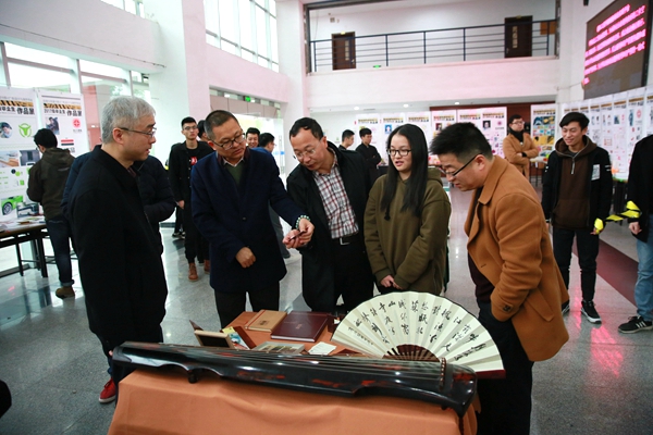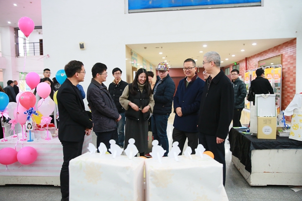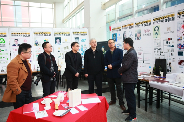 在随后的参观中,领导对学生的毕业作品给予了肯定和赞许,并鼓励学生们要以专业为基础开展创新创业,结合市场让自己的产品走向市场形成商品能力,为学院增光也为温州的文化创意市场的繁荣发挥自己的聪明才智。