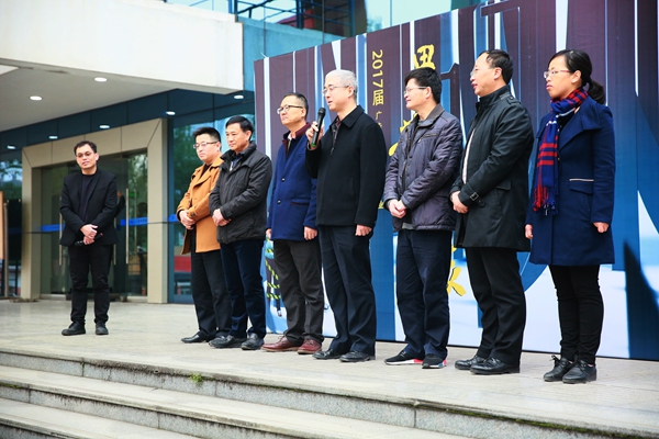 2017年1月11日8点半,温州文化创意学院、信息与传媒分院2017届广告设计与制作专业毕业作品展在六号教学楼一楼大厅隆重举行。学院院长贺星岳、副院长张俊平、中共温州市委宣传部主任林必祝、学院高职研究所主任邱开金、学院纪检监察室主任黄爱素、温州文化创意学院副院长吴同喜、信息与传媒分院院长潘修强、书记任志杰老师出席了毕业展的开幕式并讲话。