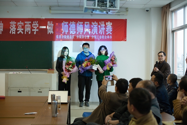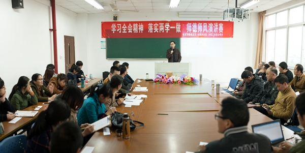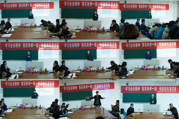 为弘扬新时代青年教师的良好师德师风,倡导健康向上的精神风貌,培养四有教师,信息与传媒分院党总支、办公室和工会于2016年12月14日联合举办“学习全会精神、落实两学一做、师德师风演讲赛”,参赛者由信息与传媒分院下属的各教研室和办公室选派,不参赛的其他老师全部作为评委,既提高了评分的公正性,也增加了相互学习的效率。