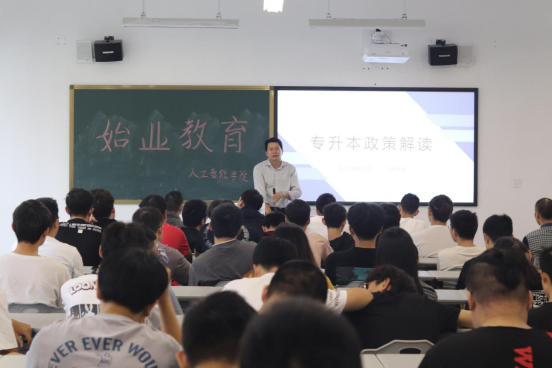 最后,徐登喜副书记作重要讲话。他勉励同学们应志存高远,为继续升入本科而努力奋斗。他向同学们解读了2020年浙江省普通高校专升本相关政策。第一,每位同学应明确自己的目标和方向,向着自己心仪的大学发力。第二,应清晰了解专升本与就业的利弊,做好自己的职业生业规划。第三,填报志愿时应“分数优先、兼顾志愿”,谨慎把握机会。会议最后,徐书记向每位同学表达了真挚的祝福:希望各位同学都能学业有成,前程似锦。