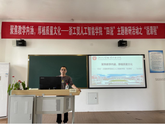 为了更好地促进教师专业成长,使他们在教学设计、课堂教学能力等方面的提升,提高人才培养质量,达到以“说”促“教”的目的,根据学校”四说“专题教研活动工作安排,5月27日,我院在人工智能学院楼409教室组织开展”四说“系列主题教研活动之”说课程“、“说课堂”活动。本次活动由人工智能学院副院长章增优主持,专家组评委由学校现代管理学院副院长孙富山、校督导张跃飞、人工智能学院督导狄金海、专业主任金慧峰和钱月钟等5位老师担任,分院全体教职工参加此次活动。
