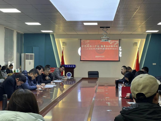 为进一步推进我院教师师德师风和校园安全建设,提升师德师风和校园安全建设水平,12月2日下午13:30在人工智能学院楼414会议室召开以“学思践悟二十大,奋勇担当铸思魂”为主题的师德师风建设暨疫情防控会议,人工智能学院全体教职工参加,会议由学院党总支书记徐登喜主持。