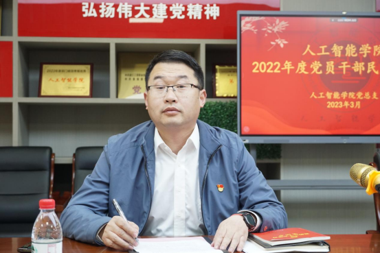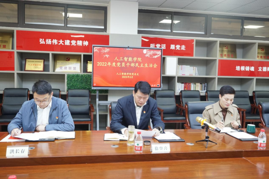 3月23日上午,人工智能学院党总支在人工智能学院414会议室召开2022年度党员干部民主生活会。学校党委书记张志东出席,学校组织部副部长应马忠,宣传部(发展规划处)主管王荣列席,全体人工智能学院党总支委员参会。会议由人工智能学院党总支书记徐登喜主持。