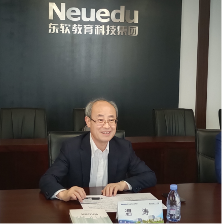 为贯彻落实访企拓岗促就业专项行动,有力促进毕业生更加充分、更高质量就业,浙江工贸职业技术学院校长余闯、副校长汪焰带队深入企业,调研社会人才需求,推动校企合作就业,为毕业生开拓就业渠道和就业岗位。3月20日,校长余闯、副校长汪焰带队人工智能能学院相关人员前往大连东软科技教育集团进行走访座谈交流。东软教育科技集团执行董事、CEO、总裁温涛,副总裁董本清,职业教育事业部副总经理惠慧等领导出席。