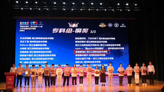 4月15日,“图森未来杯”浙江省第二十届大学生程序设计竞赛在杭州师范大学落下帷幕。我院派出三支队伍参加本次竞赛,其中来自人工智能学院软件技术专业的温海涛、金星希、李佑东三人组成的队伍获得了铜奖。