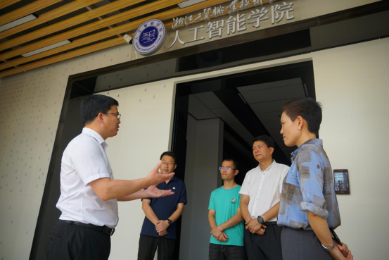 6月19日,学校党委书记张志东一行走访调研人工智能学院,党校办主任以及我院党政领导班子成员全程陪同。