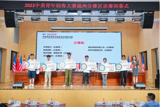 浙工贸党委书记张志东,温州市教育局高教处处长吕信恩,浙工贸副校长汪焰,温州市科技信息研究院研究员杨洁,温州市众创空间董事长董长胜以及评审专家、参赛队员参加了闭幕式。