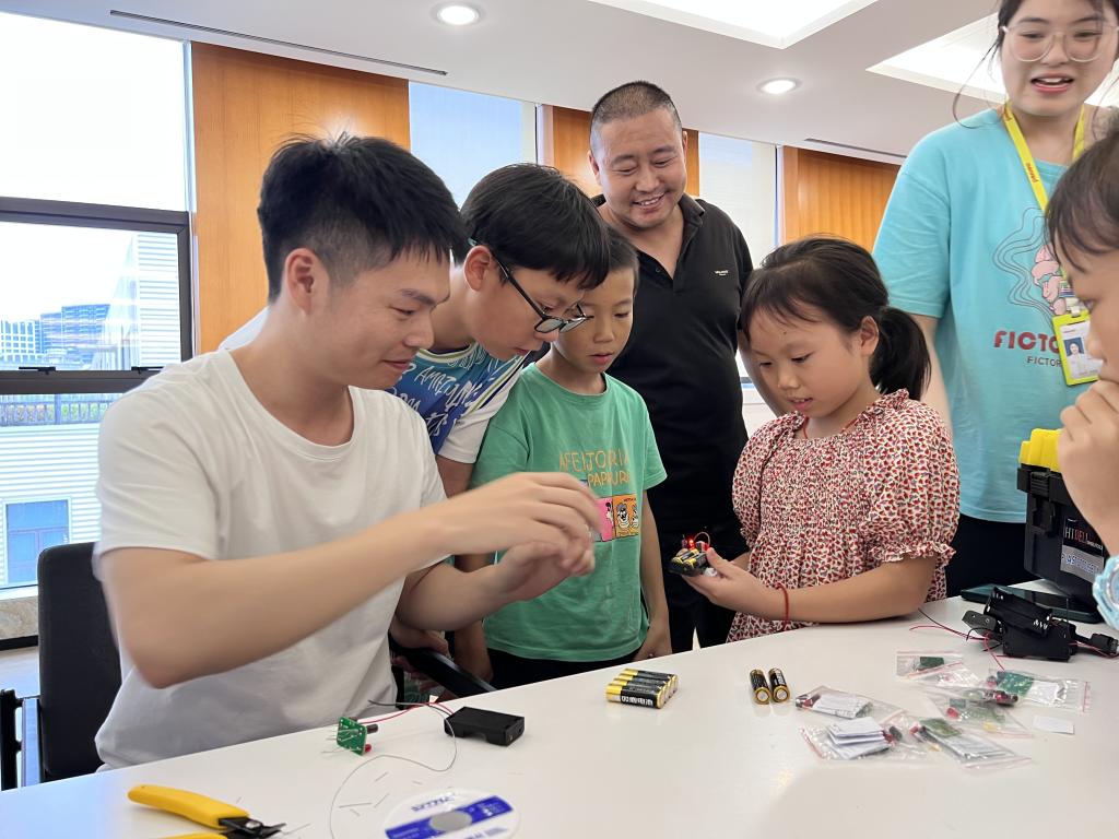 2023年7月28日上午,人工智能学院在浙江曼瑞德舒适系统有限公司组织一场小型智能电子产品开发与制作活动,旨在激发小朋友热爱科学、追求科学、探索科学的热情与兴趣。