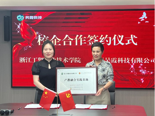 双方本着“优势互补、资源共享、互惠双赢、共同发展”的原则,在该公司会议室开展了交流合作讨论。会上,赵秀芝院长为吴霞科技授予产教融合实训基地牌子,并代表学校与吴霞科技签订了校企合作协议,她指出,浙江工贸职业技术学院及钱月钟博士团队非常重视产教融合工作,希望本次签约能充分发挥校企双方的优势,在产学研和互派挂职交流合作上做实做深,提高高职教育为社会、行业和企业服务的功能,以项目为载体,发挥各自人才、技术、资源优势,推动车联网产业链的集中多点突破,建设成为温州区域校企合作的典范。