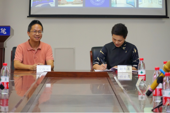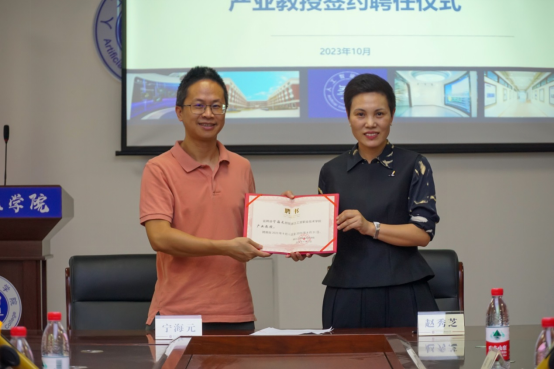 在产教融合中心的授牌仪式后,院长赵秀芝与宁海元CEO在人工智能学院414会议室共同签订产业教授协议,并颁发产业教授聘书。赵院长希望能够借助宁海元CEO的行业经验和专业知识,引领学院在数字孪生领域的学术研究和专业教学,为下一代创新者提供更优质的教育资源。