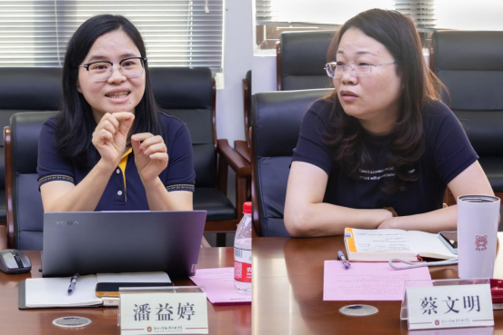 在名师点评环节,潘益婷、蔡文明两位老师结合丰富的教学经验及教师教学能力大赛备赛心得,从课程设计逻辑、教学方法创新、学生参与度提升等维度进行了专业点评,为通识课程的质量提升提供了宝贵建议。