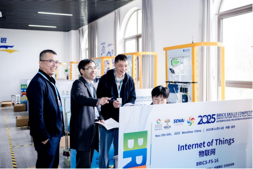 金砖国家职业技能大赛作为促进金砖国家技能开发与国际合作的重要平台,对推动职业技能人才培养、深化国际技能交流合作具有重要意义。此次浙江区域选拔赛的成功承办,不仅为浙江省物联网领域技能人才搭建了交流学习、同台竞技的优质平台,更充分彰显了我校在物联网领域的深厚底蕴与组织能力。未来,我校将以此次赛事承办为契机,进一步深化教育教学改革,持续推进产教深度融合、校企协同育人,不断提升职业技能人才培养质量与水平,为服务国家“一带一路”倡议和金砖国家技能发展贡献更多教育力量与人才支撑。