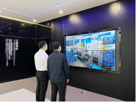 在数字孪生实践基地,六类数字孪生作品各具特色:数字孪生智慧工厂仿真平台以汽车玻璃安装模拟机械臂沙盘还原工业生产逻辑;