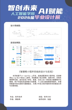聚焦民生与健康领域,《智慧眼小程序系统的设计与实现》同样亮点突出。该项目充分发挥多端适配的技术优势,基于微信小程序平台集成多元化视力健康管理功能,构建起学校、家庭、社区协同联动的数字化服务平台,为青少年视力保护提供科学、持续的数据支撑与决策依据。