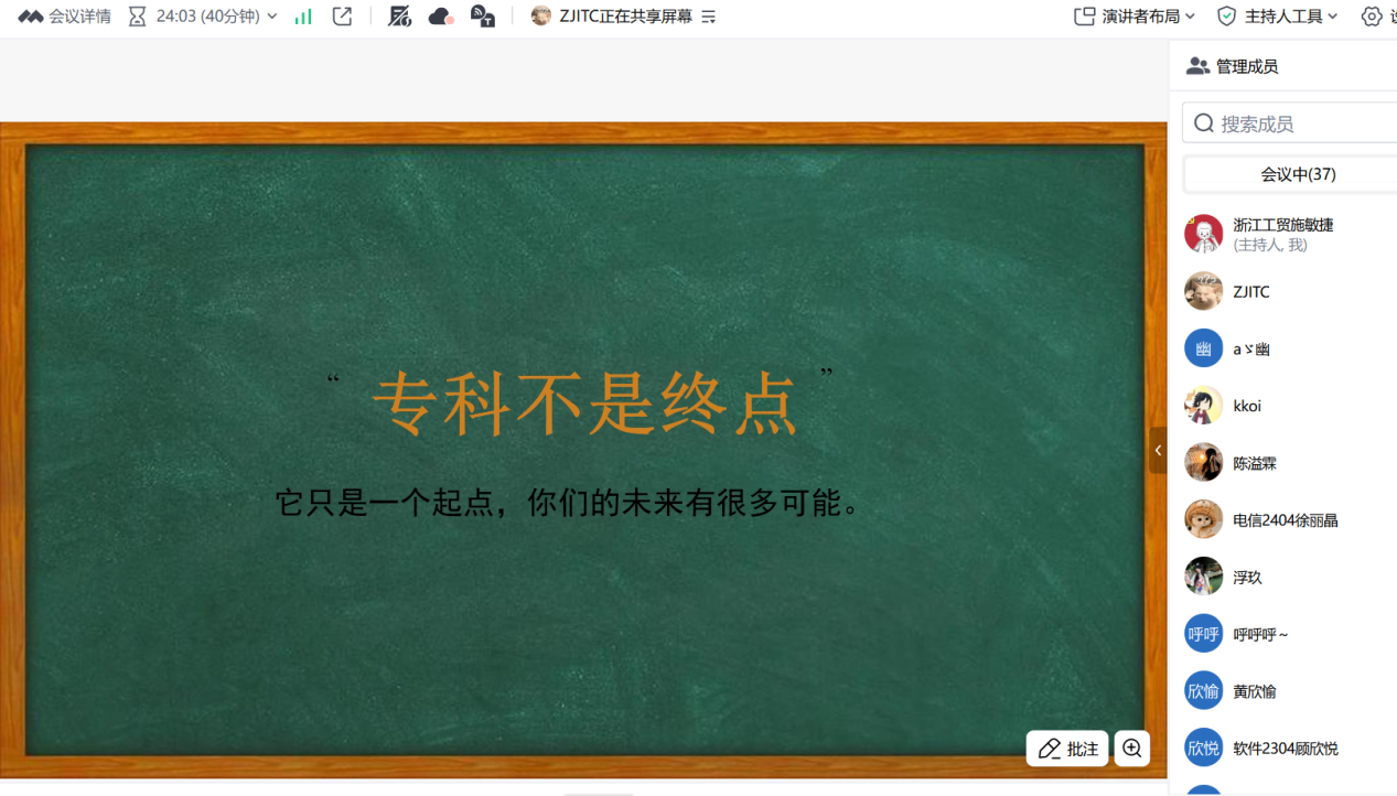 2026年1月31日,人工智能学院举办“职导赋能朋辈领航”求职经验分享会,本次分享会以线上会议形式举行,为大三毕业生搭建求职指导平台,助力学子明晰职业方向、提升就业竞争力。本次分享会特邀优秀校友项云淋老师与就业指导施老师主讲,现场氛围热烈,干货满满。