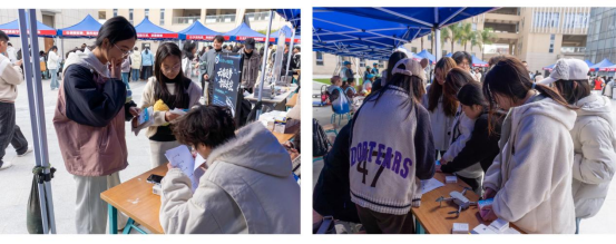 紧邻机器狗展区的无人机知识答题区同样热度高涨。答题环节以无人机原理、飞行安全规范、行业应用案例及人工智能相关基础知识为核心考点,设置单选、多选、判断等多种题型,兼顾知识普及与趣味挑战。同学们纷纷驻足参与,或独自认真思索,或三五成群讨论交流,在答题过程中学习无人机技术常识,了解人工智能在航空领域的应用前景。参与答题的同学还获得了学院准备的小礼品,这进一步激发了同学们的参与热情。
